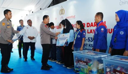 Momen Kapolri Ikut Donor Darah saat Hadiri Baksos HUT ke-53 Buruh KSPSI