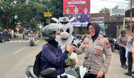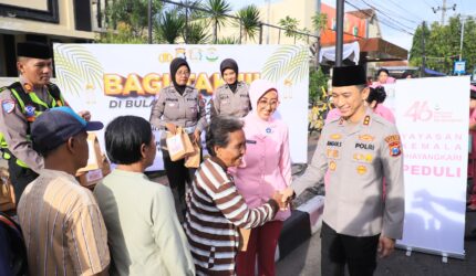 SOSIAL Wujud Syukur, Kapolres Kediri Kota dan Bhayangkari Bagi Takjil untuk Ojol dan Pengguna Jalan