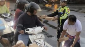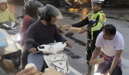 DAERAH Dibantu Satlantas Polres Tanjung Perak, Gabungan Media Online Bagikan Takjil ke Pengguna Jalan
