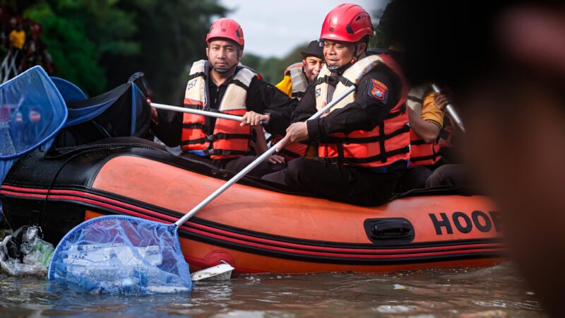 Kali ini melalui aksi nyata puluhan personel Polrestabes Surabaya bersama pemerintah Kota Surabaya melakukan pembersihan aliran kali di kawasan Jembatan Merah, Jumat (20/2/2026).