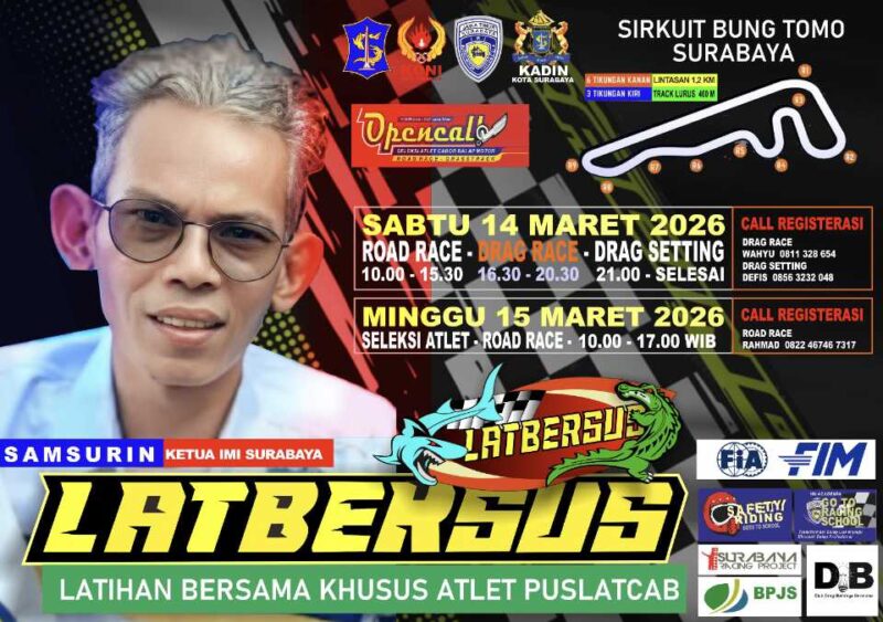 “IMI Kota Surabaya ingin memberikan ruang yang luas bagi para joki, bengkel, dan mekanik agar mereka bisa berkompetisi secara berjenjang. Dengan adanya wadah resmi seperti ini, kami berharap dapat menekan praktik balap liar di jalanan,” ujar Samsurin melalui rilis yang diterima Redaksi, Jumat (13/3/2026).