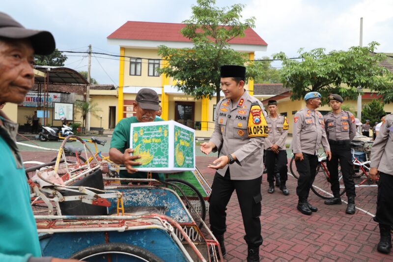 sentralmerahputih.id | Magetan – Menjelang Hari Raya Idulfitri 1447 H, jajaran Polres Magetan menggelar kegiatan bakti sosial sebagai bentuk kepedulian kepada masyarakat, khususnya para pengemudi ojek online (ojol) dan tukang becak. Kegiatan tersebut dipimpin langsung oleh Kapolres Magetan, AKBP Dr Raden Erik Bangun Prakasa, pada Senin (16/3/2026).