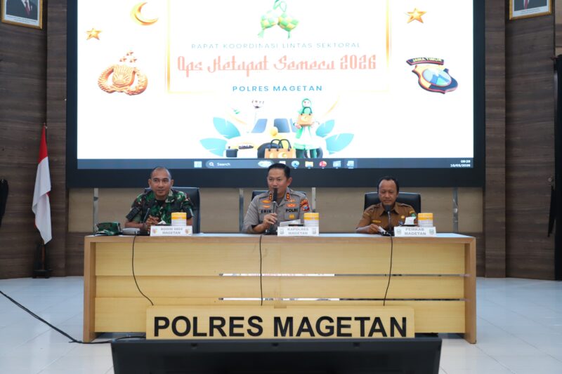 sentralmerahputih.id | MAGETAN – Dalam rangka mempersiapkan pengamanan arus mudik dan perayaan Hari Raya Idul fitri 1447 H, Polres Magetan menggelar Rapat Koordinasi (Rakor) Lintas Sektoral Operasi Ketupat Semeru 2026. Kegiatan tersebut dilaksanakan pada Selasa (10/3/2026) bertempat di Aula Pesat Gatra Polres Magetan.