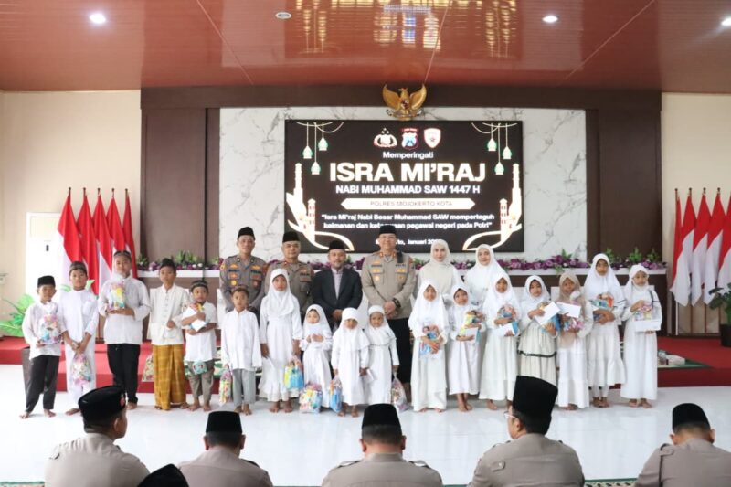 “Momentum Isra Mi’raj ini hendaknya menjadi sarana introspeksi diri bagi seluruh personel Polres Mojokerto Kota untuk meningkatkan kualitas ibadah, integritas, serta tanggung jawab dalam pengabdian kepada masyarakat. Dengan keimanan dan ketaqwaan yang kuat, kami berharap setiap anggota Polri dapat menjalankan tugas secara profesional, humanis, dan berintegritas,” ujar AKBP Herdiawan.