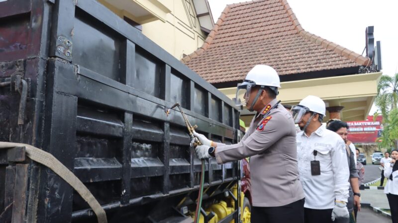 Sebagai penutup, kegiatan dilanjutkan dengan aksi simbolis pemotongan bak truk yang dimensinya melanggar ketentuan, dilakukan langsung oleh Kapolresta Banyuwangi dan disaksikan oleh seluruh peserta FGD.