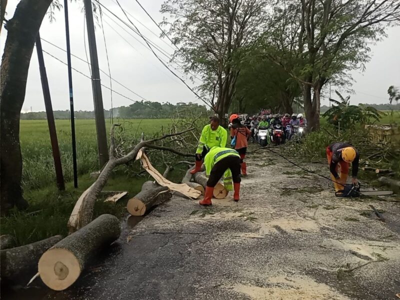 Peristiwa tersebut terjadi pada Sabtu (20/12/2025) sore sekira pukul 15.00 WIB, di pinggir jalan raya jurusan Geneng–Kedungputri Paron, tepatnya masuk Dusun Plampoan I, Desa Geneng. Pohon tumbang sempat menghalangi badan jalan dan menyebabkan arus lalu lintas mengalami kemacetan.