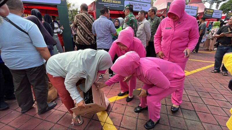 Pasar murah Polres Ngawi mendapat sambutan antusias dari masyarakat yang datang sejak pagi hari untuk membeli berbagai kebutuhan pokok dengan harga di bawah harga pasar.