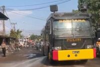 sentralmerahputih.id | GRESIK – JATIM, Mobil operasional Water Cannon Satuan Samapta Polres Gresik Polda Jawa Timur tampak diterjunkan di jalan raya Yosowilangun – Suci…