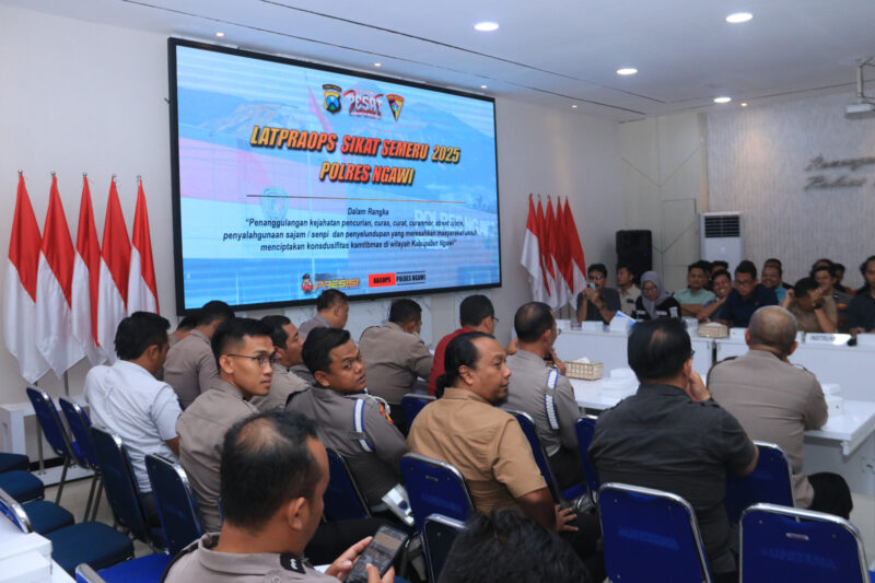 sentralmerahputih.id | Ngawi – Dalam rangka menciptakan situasi kamtibmas yang aman dan kondusif di wilayah Kabupaten Ngawi, Polres Ngawi di bawah kepemimpinan AKBP Charles Pandapotan Tampubolon, S.I.K., S.H., M.H. melaksanakan Latihan Pra Operasi (Lat Pra Ops) Sikat Semeru 2025 yang berlangsung di Ruang Guyup Mapolres Ngawi, Selasa (22/10/2025).