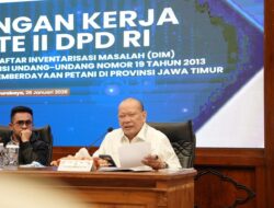 Dalam kunjungan kerja Komite II yang dipimpin oleh Ketua Komite II, Badikenita Br. Sitepu (Anggota DPD RI asal Sumatera Utara) itu, rombongan Anggota Komite II diterima oleh Sekretaris Daerah Pemerintah Provinsi Jawa Timur Adhy Karyono, Senin (26/1/2026). Hadir pula dalam pertemuan yang berlangsung di ruang rapat Binaloka Adhikara, perwakilan dari Kementerian ATR/BPN, Kementerian Lingkungan Hidup, dan Kementerian Pertanian, serta Serikat Petani Indonesia.