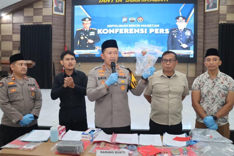 sentralmerahputih.id | Magetan – Polres Magetan berhasil mengamankan seorang pria yang diduga terlibat dalam peredaran uang palsu. Pengungkapan tersebut disampaikan dalam konferensi pers yang dipimpin langsung Kapolres Magetan AKBP Raden Erik Bangun Prakasa pada Kamis (26/2/2026) terkait Temuan Uang Palsu dalam Pengembangan Perkara Dugaan Tindak Pidana Penggelapan.