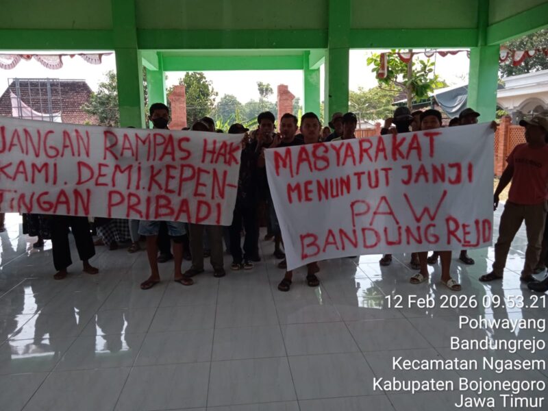 sentralmerahputih.id | BOJONEGORO – Puluhan warga Desa Bandungrejo, Kecamatan Ngasem, Kabupaten Bojonegoro, mendatangi balai desa setempat pada Kamis (12/2/2026). Kedatangan warga tersebut untuk menagih janji Badan Permusyawaratan Desa (BPD) terkait pembentukan panitia Pemilihan Kepala Desa Pergantian Antar Waktu (Pilkades PAW).